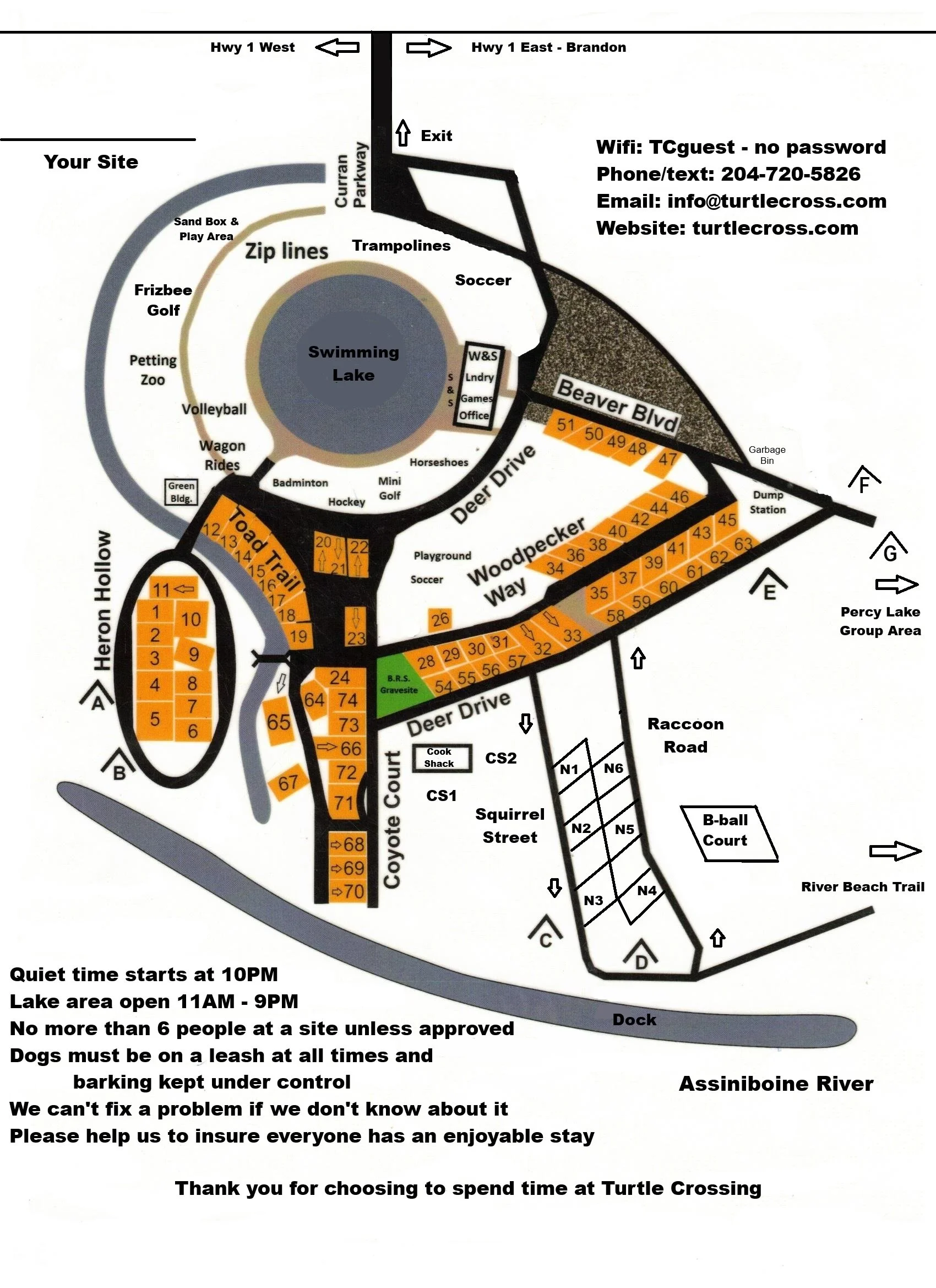 Park Map Turtle Crossing Campground, RV Park and Event Centre Brandon Manitoba